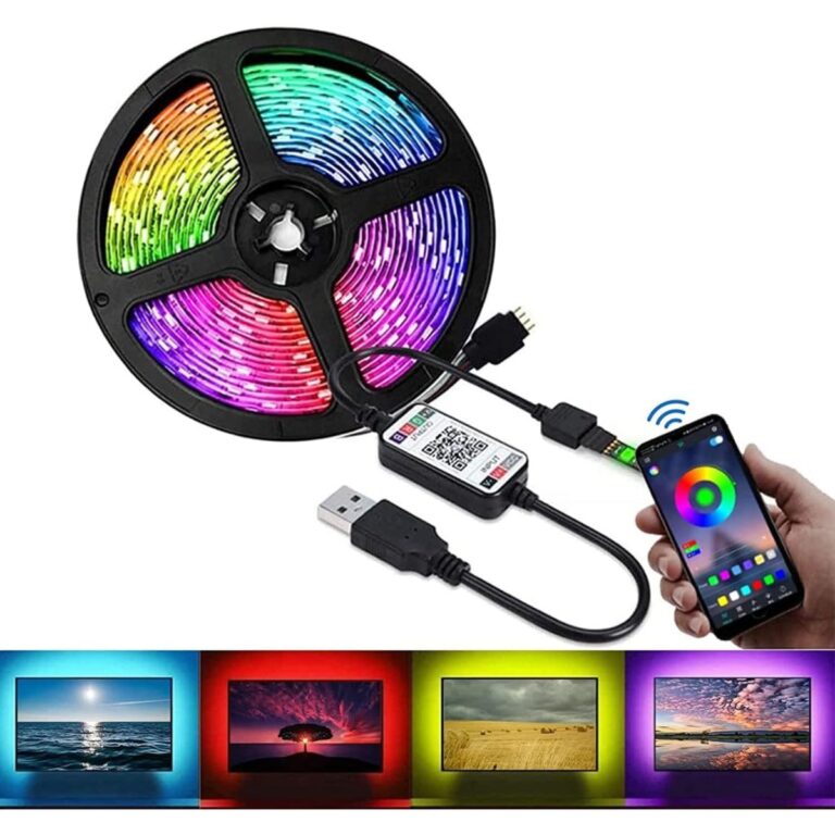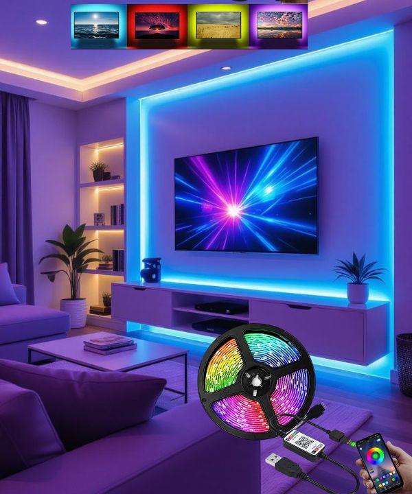 شريط إضاءة 5 متر – ألوان متغيرة، مزامنة مع الموسيقى، تحكم بالبلوتوث، مقاوم للماء