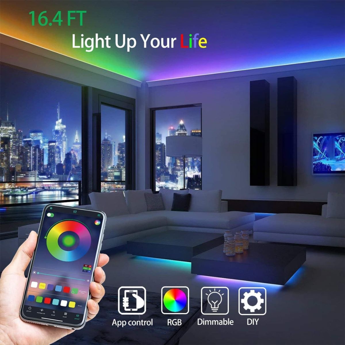 شريط إضاءة LED بطول 5 أمتار مثالي لتزيين منزلك وغرفتك، الخزانة، المطبخ، كما يمكن استخدامه مع التلفاز والحاسوب. يمنحك هذا الشريط إمكانية تغيير لون الإضاءة واختيار الوضع المفضل بكل سهولة عن طريق الهاتف.